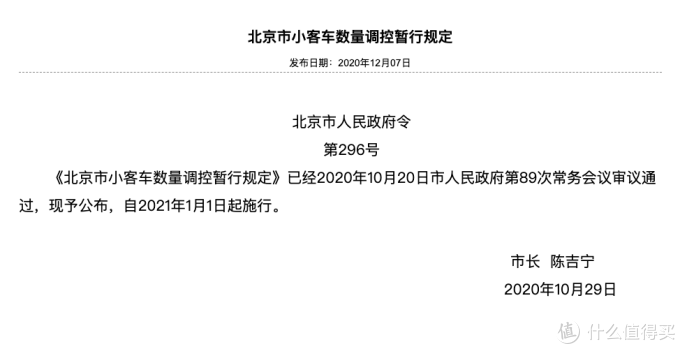 车闻小卖部 北京市小客车数量调控新政将于明年1月1日起实施 汽车整车 什么值得买