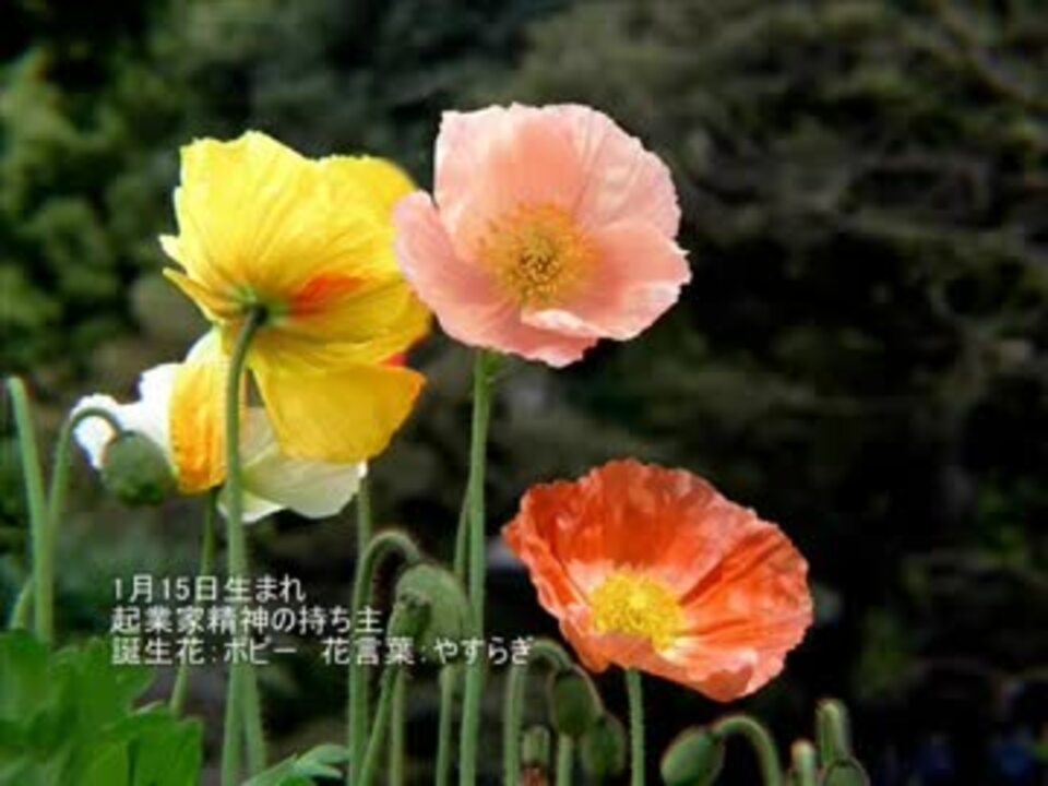 誕生花(たんじょうか)は、生まれた月日にちなんだ花のこと。 古来から花や木などの植物には神秘的な力が宿ると考えられており、神々や暦と関連付けられたものと考えられている 。 しかし誕生花そのものの概念・起源や、誰が決定しているのかなど、その由来は国や地域によって諸説 誕生花:諸説あります。お花を楽しんでください ヒヤシンス アイスランドポピー アイスランドポピー *年のツイート*~~~~~~~~~~~~~~~~~~~~~ 誕生花 アイスランドポピー 花言葉「安らぎ」 安らぎ 今ほど安らぎの時が欲しいと 願ったことがある