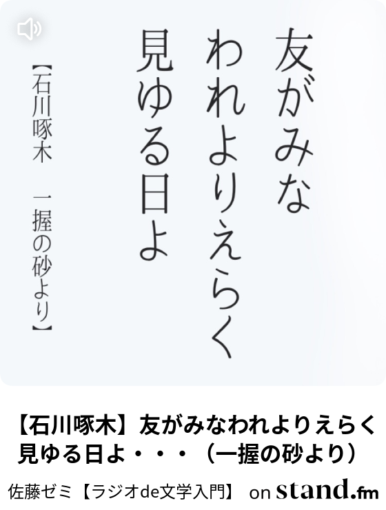 石川啄木 友がみなわれよりえらく見ゆる日よ 一握の砂より 佐藤ゼミ ラジオde文学講座 Stand Fm
